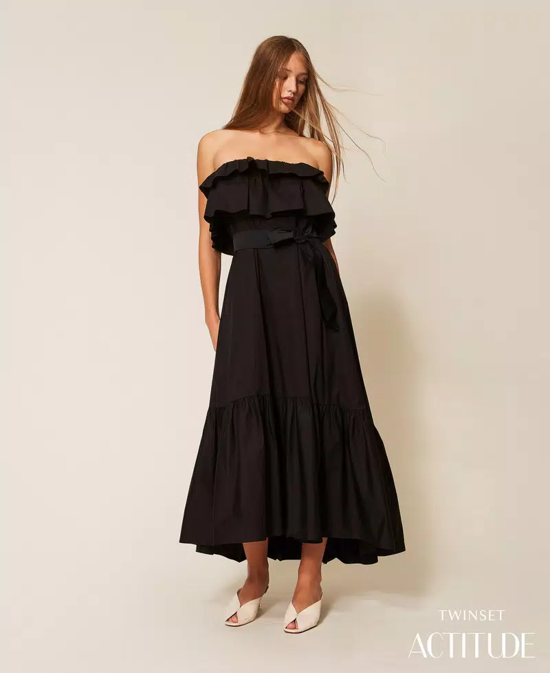 TWINSET Off-shoulder long poplin dress
