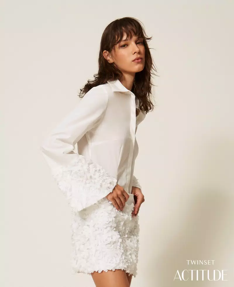 TWINSET Poplin and tulle shirt with flowers ποσότητα