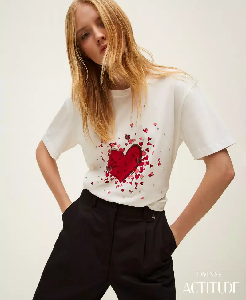 TWINSET T-shirt with print and rhinestones ποσότητα