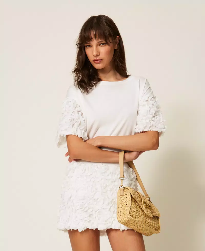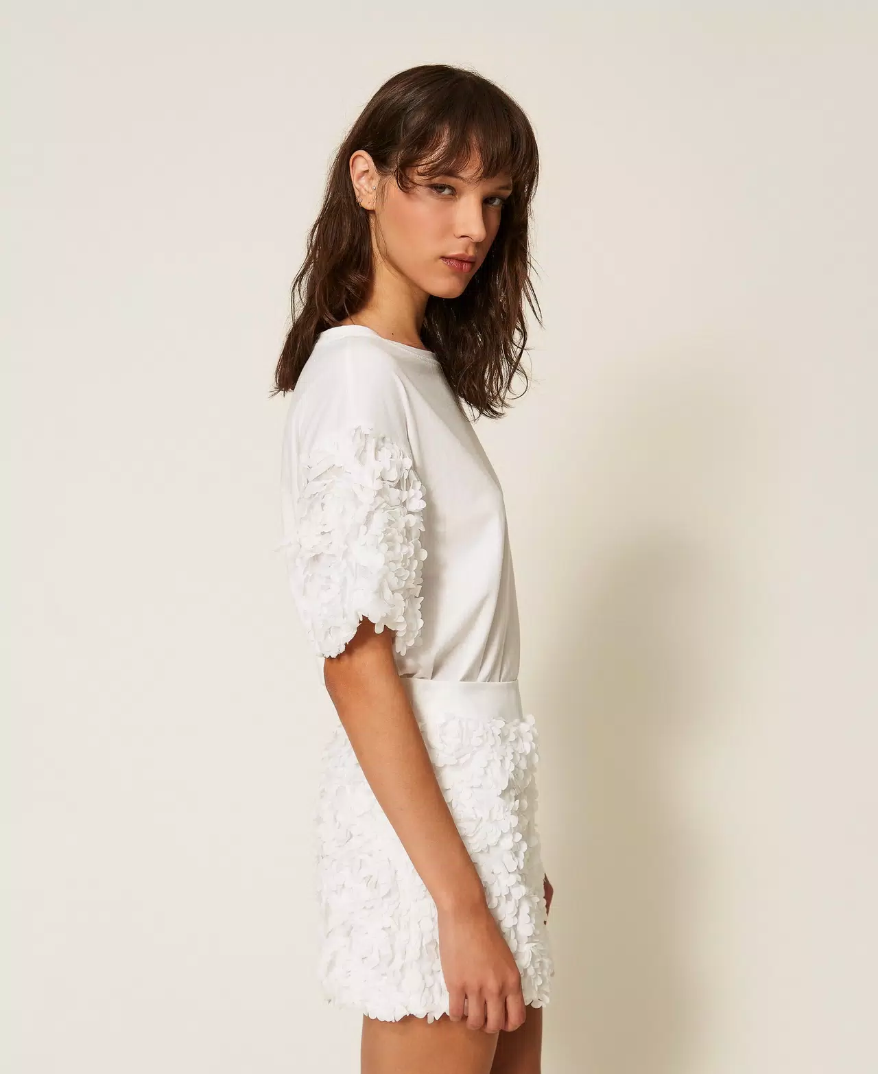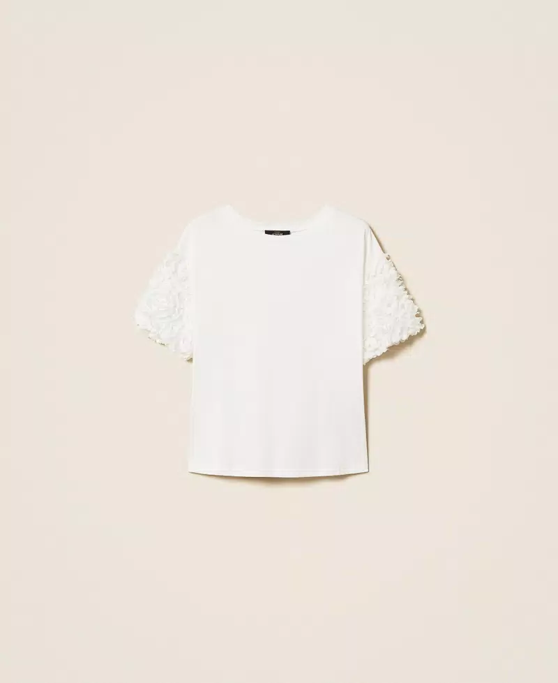 TWINSET T-shirt with tulle sleeves with flowers ποσότητα
