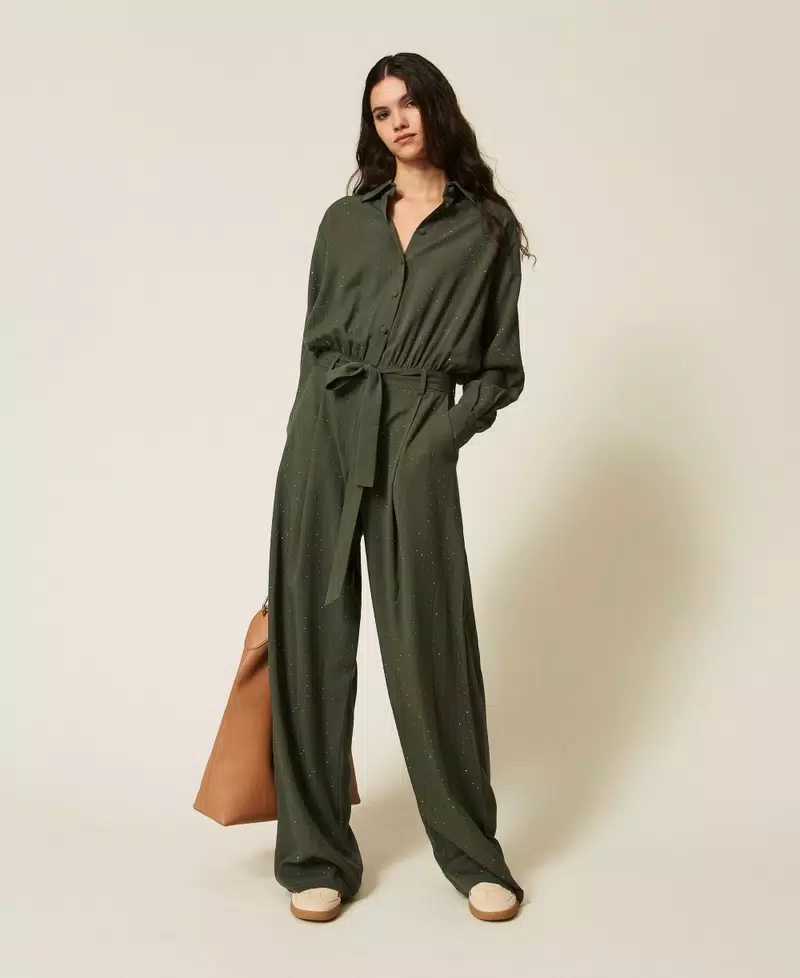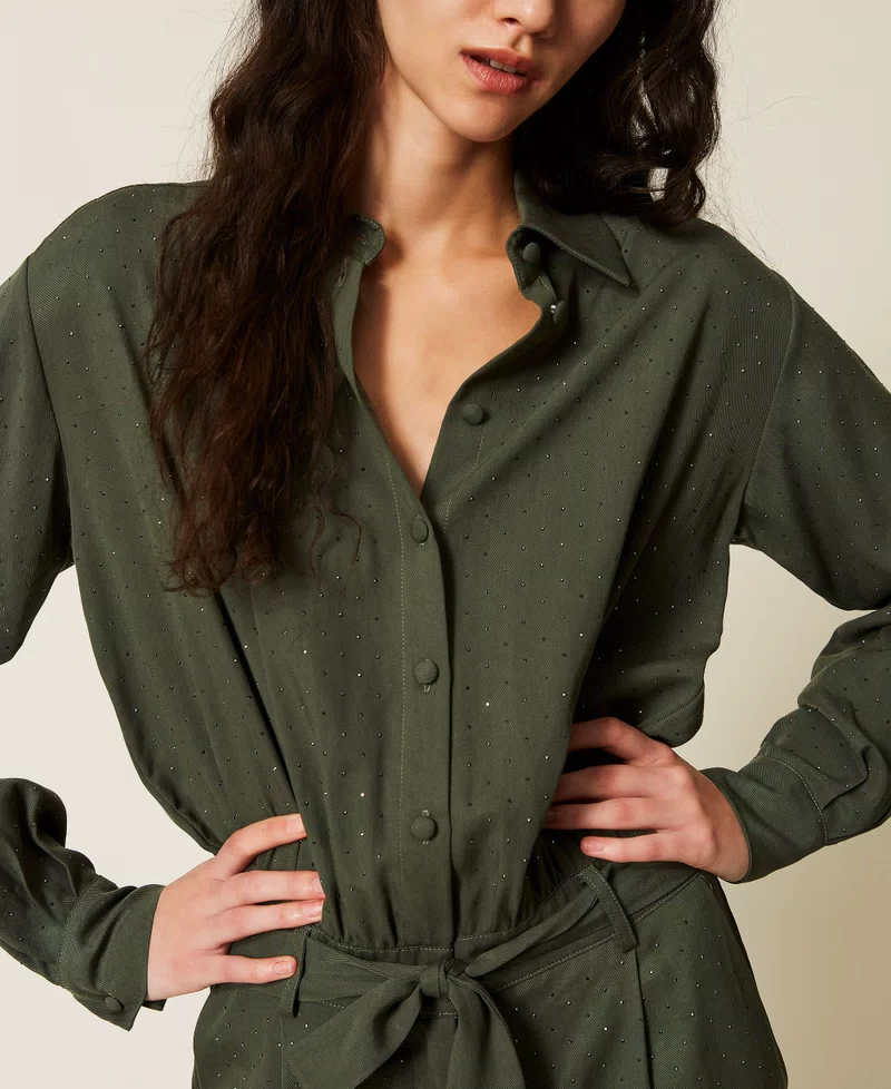 TWINSET Twill jumpsuit with studs ποσότητα