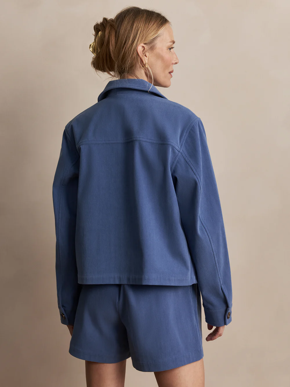 Crafted from a fine needle cord the Carlotta utility jacket has a subtle boxy shape, exposed button fastening and statement patch pockets. For a more formal look pair with tailored shorts.